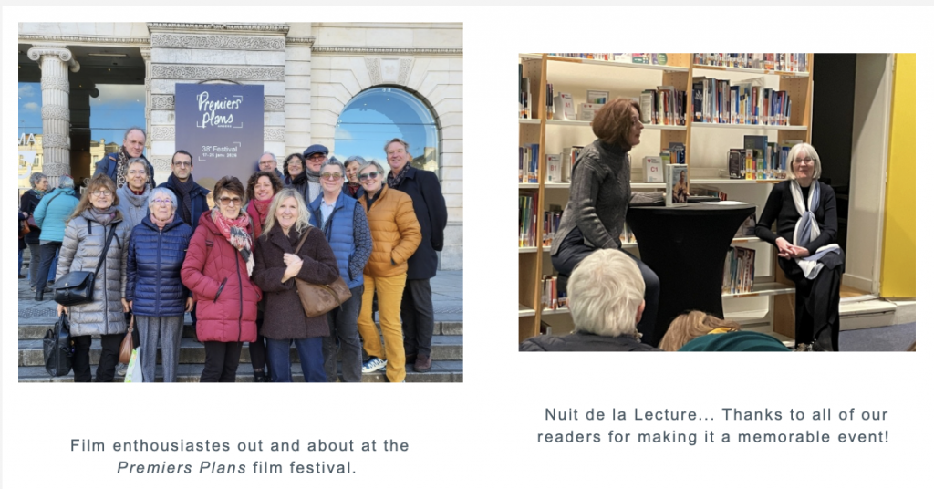 January was packed with lively moments at the library as we brought our community together through reading and film. We proudly joined the nationwide Nuit de la Lecture with two standout events: a cozy Pyjama Party Story Time for children ages 4 to 8, and Readings in English, where book lovers shared favorite passages aloud. The excitement continued at the Premiers Plans film festival, where our members attended a selection of films in English, reserving an impressive 99 tickets!